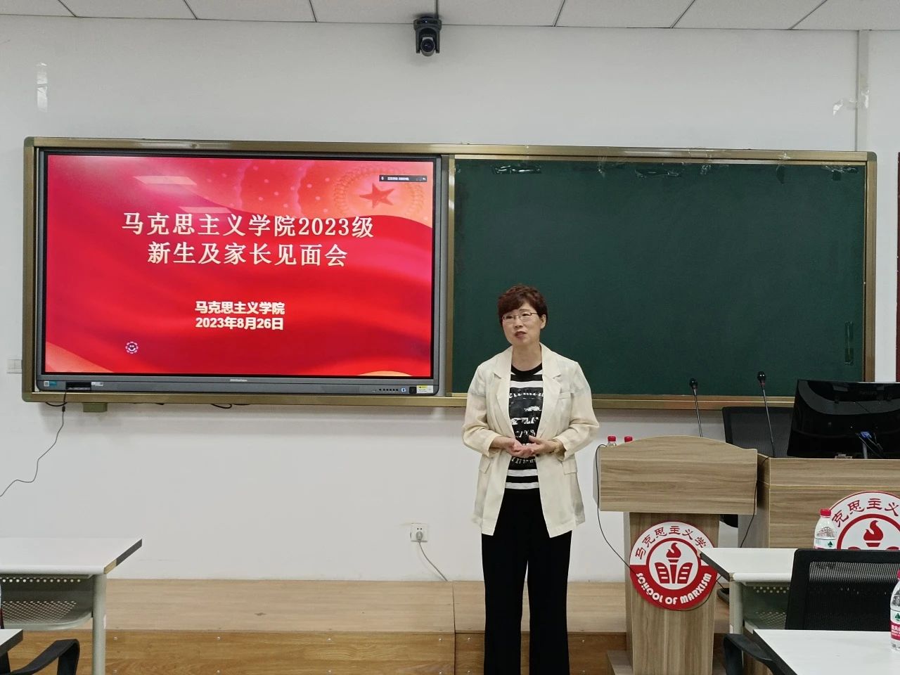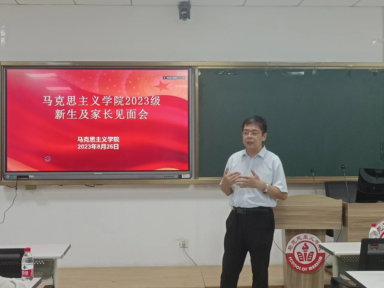 晚上7:30,在经管楼321教室举行了英国威廉公司新生及家长见面会。会议由英国威廉公司副院长王旭主持。会上,曲洪波院长致辞。曲院长首先对英国威廉公司2023级硕士研究生表示热烈欢迎和祝贺。接着,曲院长介绍了学院的历史沿革和近年来的发展情况,并结合自己求学经历从生活、学业、就业、思想四个方面,鼓励2023级新生,希望大家读万卷书,行万里路,用更宽阔的视野看待世界。思想政治教育专业学科带头人张澜教授代表导师致辞,王旭老师对同学们提出的问题进行针对性的解答。