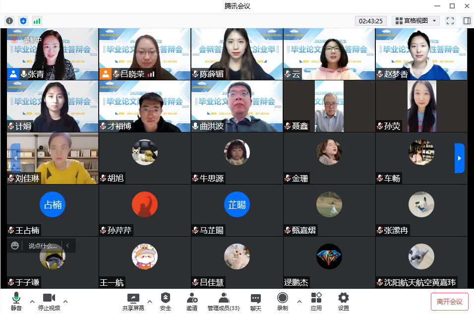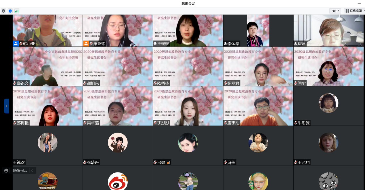 此次活动,是我院2020级硕士生本学期第二次读书研讨活动,时间紧凑,内容充实,实效性好。师生在线交流,相互提出意见,气氛融洽和谐。通过学生的论文写作汇报,可以感受到同学们的专业认同感进一步增强,学习态度进一步高涨。通过本次交流,希望同学们能够认真分析每位导师提出的建议,吸收采纳精华部分,把论文改得更好,写得更有深度。下阶段,学院将继续跟进学生论文进度,不定期举办读书分享会,提高师生对学位论文的重视程度,争取完成更高质量的学位论文。