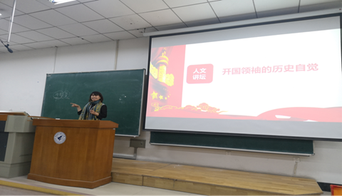 最后,齐艳霞副教授讲述了周恩来同志的光荣事迹,重点分析了历史自觉的奉献意义以及伟人楷模对当代青年的积极影响。同时,她语重心长地告诫同学们,今天之所以感到岁月静好,是因为有前辈替我们负重前行,让我们绽开幸福与胜利之花。本次人文讲坛持续两个小时,在同学们的热烈掌声中圆满结束。同学们都表示会向前辈先烈看齐,坚定不移跟党走,为实现美好生活而奋斗。