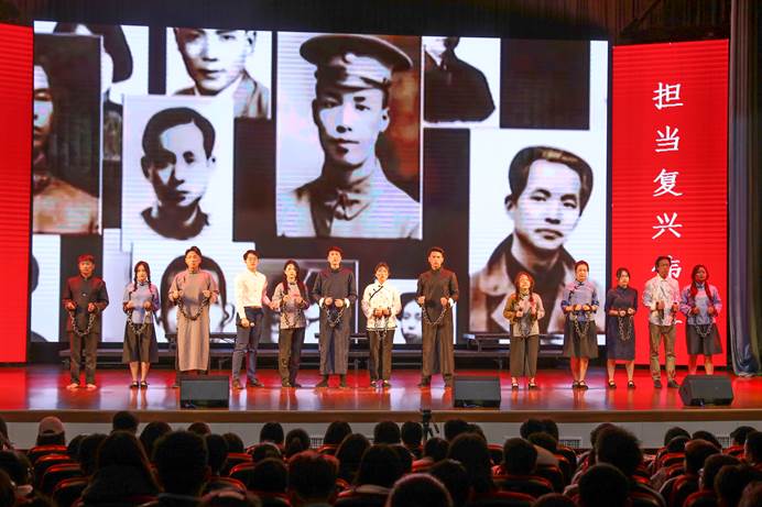 课间休息时间,沈航学子们精心准备了爱国爱党主题的多种形式的现场表演——热血沸腾的话剧《青春——信仰》、激情澎湃的歌曲《穿越百年与你相见》、歌伴舞《万疆》以及集体合唱《少年中国说》使会场气氛一度点燃高涨,现场同学们也积极与演出学子进行互动,共同抒发对迎来百年华诞的中国共产党的深情之爱与由衷祝福。课间主题文艺活动与课堂精彩理论讲授自然融合,激发了现场同学们的思想与情感共鸣,产生了强烈的感染力与正能量传播效果,起到了较好的育人作用!