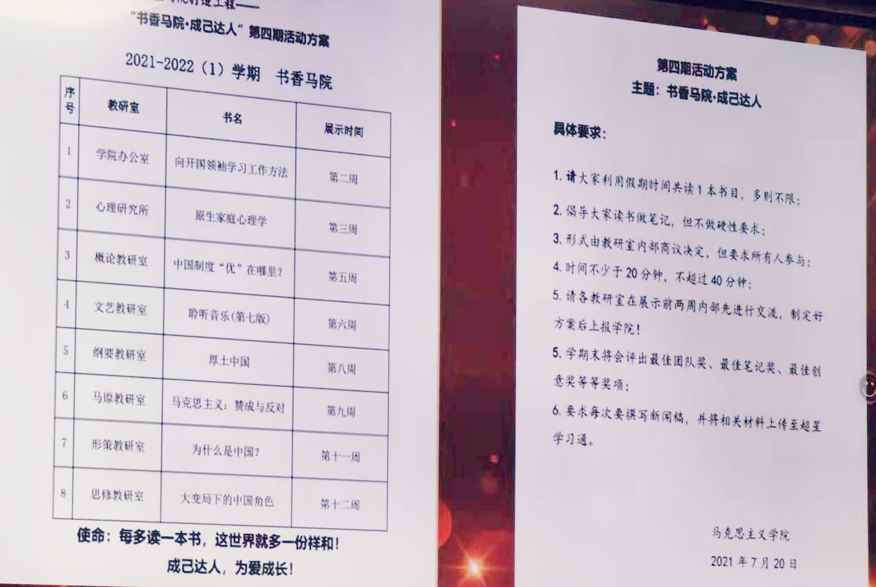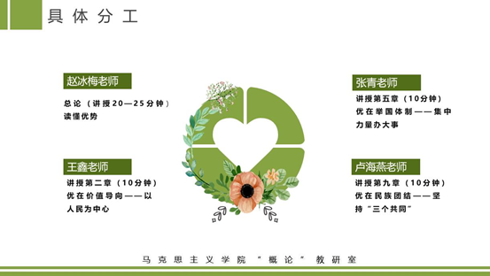 “概论”教研室几位老师在学科带头人赵冰梅教授的引领下,多次召开教研室小范围筹备会,认真研讨本次读书活动,就读书侧重点、讲授分工、活动设计等诸多细节统筹安排、规划协调,以期达致最佳呈现效果。