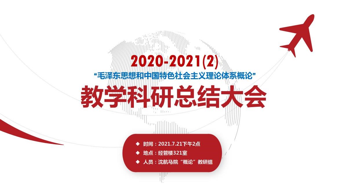 2021年7月21日下午2点,沈航马院“毛泽东思想和中国特色社会主义理论体系概论”教研组在经管楼321室召开本学期教学科研总结大会。会议由“概论”教研室主任张青主持。