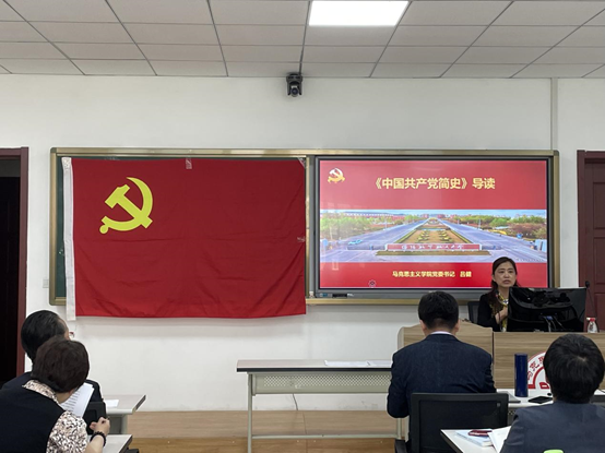其次,吕健书记从《简史》的特点和理论价值出发,为全体党员进行导读,认为《简史》一书充分反映了习近平总书记关于党的历史的重要论述精神;充分反映了中国选择中国特色社会主义道路的历史必然性;充分反映了百年党史是党带领人民群众共同创造的历史;充分反映了党的光辉历史是不断推进马克思主义中国化的历史;充分反映了党的光辉历史是一部党不断进行自我革命的历史。
