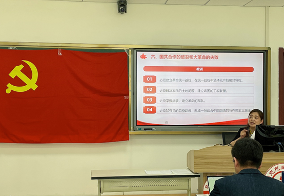 最后,吕健书记强调,作为思政课教师,更应该高度重视学习党的历史,历史是最好的老师,学习党的历史,是坚持和发展中国特色社会主义的必修课,中国革命历史是最好的营养剂,学习党史、新中国史、改革开放史、社会主义发展史,无论是教师党员还是学生党员都要做到知史爱党、知史爱国,始终保持同人民群众的血肉联系,以史鉴今,坚持用唯物史观来认识历史。
