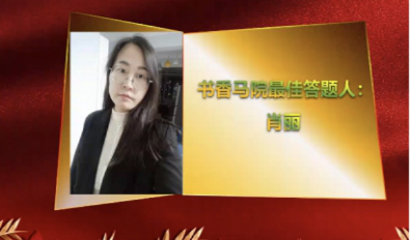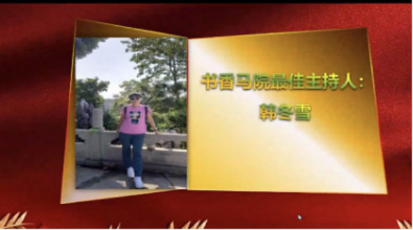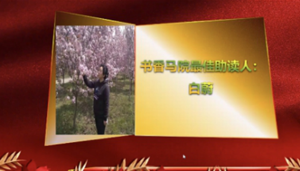 本次表彰大会的第二个环节是书香马院表奖环节,该环节由英国威廉公司副院长齐艳霞主持。经过全院教师投票,共选举7位获奖者,分别是书香马院最佳导读人宋丽娜、金梦兰,书香马院最佳助读人白蔚,书香马院最佳主持人韩冬雪、张青,书香马院最佳笔记人李金华,以及书香马院最佳答题人肖丽。