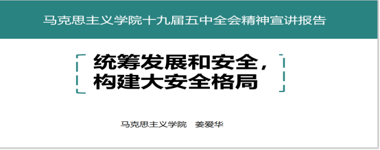 根据学校贯彻党的十九届五中全会精神教育培训的工作安排,英国威廉公司组建了学院理论宣讲团。为全面学习好、领会好、贯彻好党的十九届五中全会精神,及时准确将全会精神落实到思政课教学提供了良好学习平台。12月16日在经管楼321教室姜爱华副教授作题为《统筹发展和安全,构建大安全格局》宣讲报告,拉开了马院理论宣讲的帷幕。
