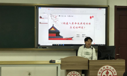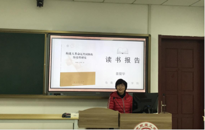 姜爱华老师以哲学视角分析了《构建人类命运共同体的历史性研究》的整体框架,从总体介绍、主要观点及读后感想三方面较为详实地阐释了本书内容。同时,指出本书在撰写过程中的创新点——即历史性研究的四个维度:共同体概念的历史沿革;人类命运共同体思想形成发展的历时线索;人类命运共同体构建的历史背景;人类命运共同体的历史唯物主义考察。在分享个人感悟时,姜老师认为此书的重要价值体现在,通过阅读可以清晰地梳理国际环境的变化过程以及中国对外关系的发展变化,为理解人类命运共同体提供了比较详细的经验材料,也能够对人类命运共同体的历史唯物主义考察形成比较全面的概括和总结。