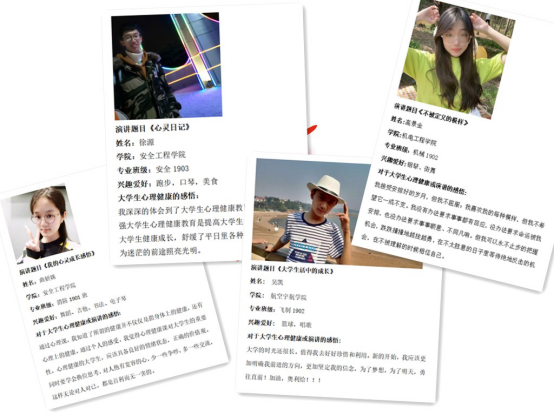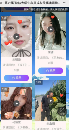 实践教学是《大学生心理与健康》课程的另一项重要任务。为提高教学效果,教师们一直致力于实践教学的探索和改革。在疫情形势下,依托于一年一度的“沈航大学生心灵成长故事演讲比赛”,将理论教学和实践教学紧密结合,开启第六届“沈航大学生心灵成长故事演讲比赛”决赛网络云评选活动,让广大学生都能参与到这项活动中来,能够切实体会、感受他人挫败的沮丧与不甘、心灵的思索与洗涤、成功的经验与喜悦……