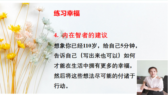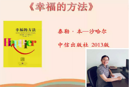 肖震老师从这本书的影响力、幸福的界定、幸福的存在形式以及提升幸福感的具体练习等方面对书目进行解读,使各位教师产生思想共鸣。并且,提示大家在日常的工作生活中懂得感受幸福、表达感恩、珍惜身边的幸福。最后,以“不要因为走得太远而忘记为什么出发,更不要因为走得太急而迷失了方向。”结束了对这本书的分享。