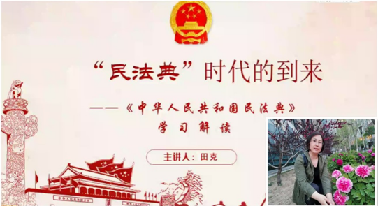 田克老师以其极强的语言魅力,对民法典进行了详实解读。围绕“编纂民法典的重大意义”和“民法典是如何回应时代之问的”两部分内容进行讲解。深度阐述了民法典对家、社会、自然、人权等等问题的回应。在教学展示的同时,也加强了民法典重大意义的宣传教育。让我们充分认识到:民法典是一部具有鲜明中国特色、实践特色、时代特色的民法典。
