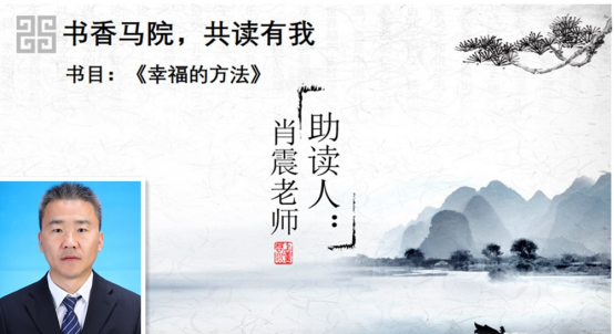 本期活动首先是对经典著作《幸福的方法》进行了“书香马院·共读有我”的读书共享环节,由学院心理教研室闫华老师进行导读,田雪老师、肖震老师助读。