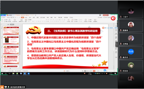 6月1日,曲洪波教授为同学们解读了金冲及教授编著的《生死关头—中国共产党的道路抉择》,曲老师主要从三个方面向同学们解读了该书。首先,曲老师向同学们介绍了6次党史上党面临的重大关头与选择。并指出每一次重大关头都是对党的重大考验。通过对重大事件的分析,曲老师教导同学们读书要抓住关键之处,学会总结,学以致用;其次,曲老师向同学们分析了党的生死抉择背后的思考。他指出,本书最重要的一个主题就是党为什么能够渡过危机,党每次平安渡过危机就在于党坚持以马克思主义为指导,坚持以人民为中心,勇于斗争;最后,曲老师从四个专业研究方向与同学们分享了自己的读书心得及其教学科研运用。曲老师指出,无论是读书还是教学科研,都要始终突出问题意识,把握时代脉搏,要通过多读书来夯实学术基础。导读结束后,曲老师也对同学们提出一些要求,希望同学们在家好好利用假期时间,认真读书,夯实自己的学术功底,为学术论文写作打下一个良好的基础。