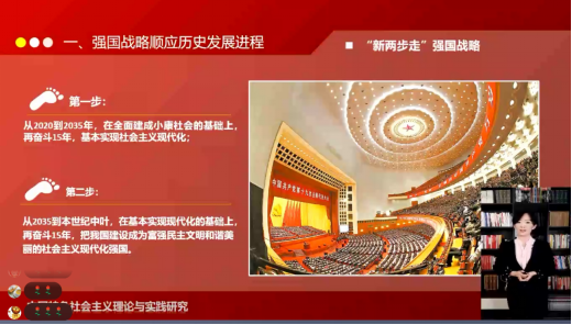就“强国战略顺应历史发展进程”,张青老师向我们展示了建成社会主义现代化强国的战略安排的历史脉络,让我们清晰地了解了强国战略的历史传承性与与时俱进性。