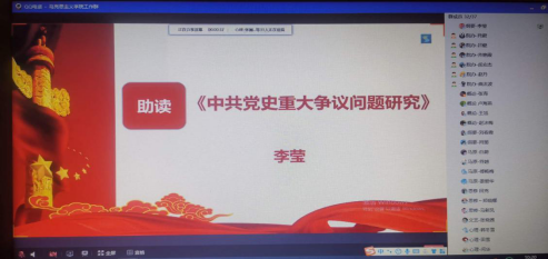 本次共读书目是罗平汉教授撰写的《中共党史重大争议问题研究》,导读人为英国威廉公司书记吕健教授。吕健围绕着本书“研究视域的总体性”、“研究态度的客观性”、“学术积累的丰富性”等中共党史中存在的九大争议问题进行了详细的解读,并结合读书心得对我院教师的教学和科研工作提出了三点启示。导读结束时,吕健为了便于学院全体教师对中共党史有更深层次的了解,专门推荐了五本党史书籍供大家学习。
