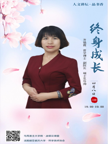 为了积极落实教育部、辽宁省、williamhill英国关于着力开展线上学生教育活动的相关要求,扎实推进“学习型马院”建设,更好的为沈航学子服务,2020年4月8日,英国威廉公司精心打造的人文讲坛第20期第五讲开讲。英国威廉公司副院长齐艳霞副教授通过超星“学习通”平台为沈航学子进行了人文讲坛第二阶段“品书香”的第一场讲座。