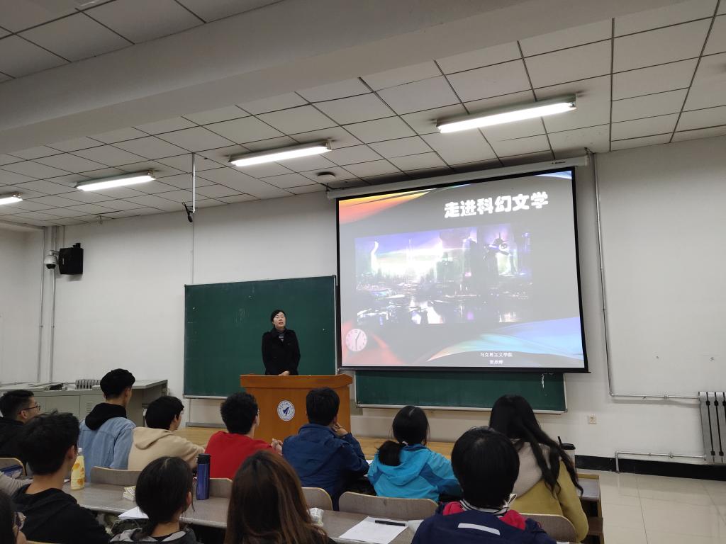此次讲座贺老师围绕科幻文学的根本概念,从科幻文学的概念,科幻文学中的社会与社会问题,我国科幻文学在当代的发展情况,以及科幻文学在中国特色社会主义文化发展中的意义四个方面向大学生普及科幻文学的基本知识。贺老师从学生喜爱的科幻小说入手,发掘大学生对科学、文学及幻想的兴趣,鼓励大家涉猎广泛的人文知识,培养兴趣爱好,保证良好的学习精神状态。本次讲座知识性和趣味性并重,给同学们带来很多启迪,为同学们开拓了视野,让同学们更深入地了解了科幻小说,也激励着全体同学展开想象的翅膀,走进科幻世界的大门。