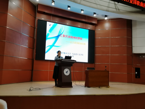 此次讲座刘老师从十大爱国歌曲引出本次讲座,她结合经典抗战歌曲欣赏,对每个时期歌曲创作的题材内容、歌曲形式、风格特点等进行了分析,对流亡三部曲,长城谣等爱国歌曲进行了解读。