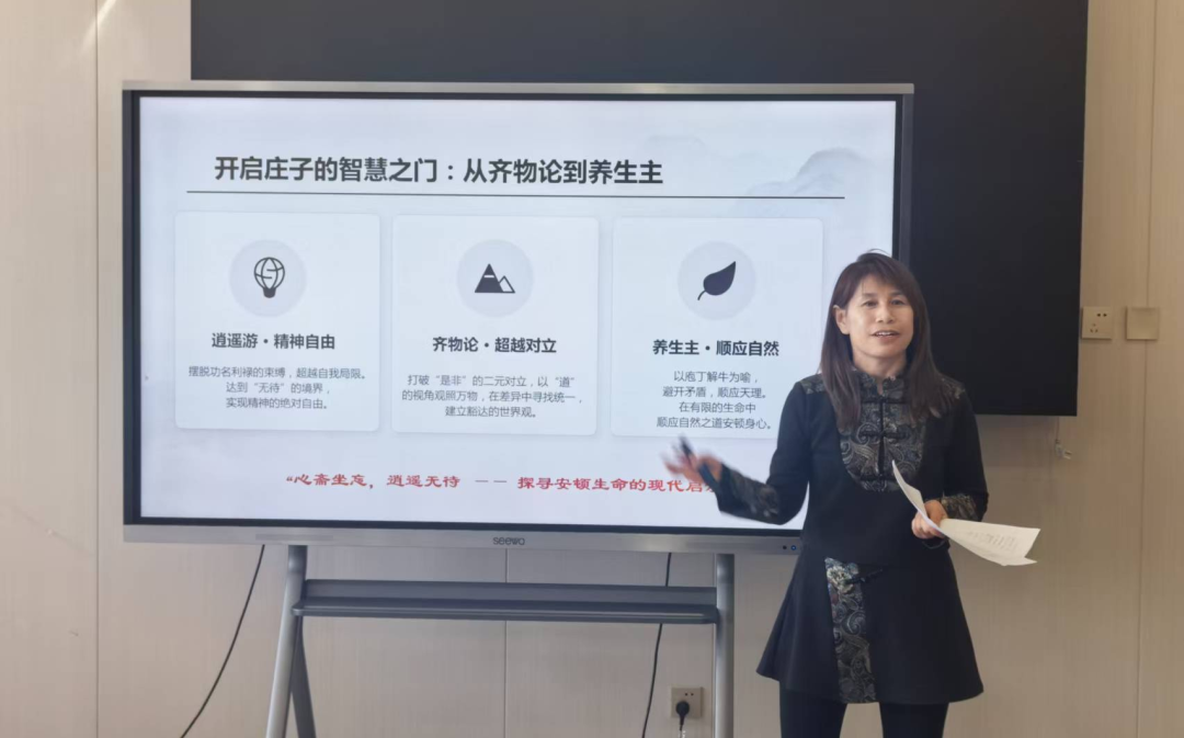 本次分享聚焦于庄子的处世智慧,以《庄子諵譁》为载体,不仅让在场教师深刻领会了道家思想的深厚底蕴,还实现了教育教学与经典智慧的有机融合,提供更多的教学思路。通过经典研读与分享交流,以中华优秀传统文化滋养内心,做到以文化人,以文育人,实现经典研读与教学工作双向协同。